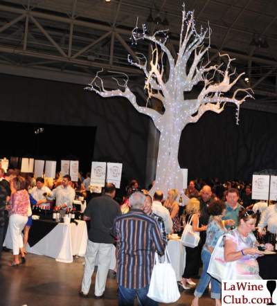 Though these events have been held in the Superdome during the past few years, it was under renovation this year. So the Grand Tastings took place in the Hilton, a very appealing space but perhaps a little small for the crowds who flock to this event. The decor, however, was probably the most successful I've seen yet. Ghostly fabric trees lit from inside with strings of lights formed the centerpieces, and on the periphery, tables with luminescent plastic footing in brilliant colors gave these edges of the scene a lovely glow. |