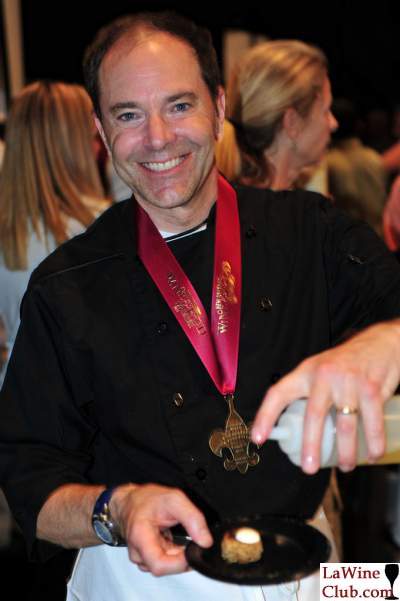 As an example, if you wanted to try the Best in Show award-winning Milk Chocolate "Turtle Soup" from Commander's Palace, you had to show up on Saturday. Ditto for the second-place award-winning Flaming Blood Orange and White Chocolate Creme Brulee in Pastry Shell, offered by the Hotel Monteleone. And yes, this last dish was presented to each and every person ON FIRE. I know that's what flaming means, but somehow I thought they'd extinguish it before passing it over to a bunch of wine-soused people with greasy fingers. But no! And even more amazing, as far as I could tell, there were no injuries! This was easily the most visually impressive dish of the show. It's hard to beat fire.